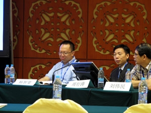 周行涛教授(中)正在主持会议 |