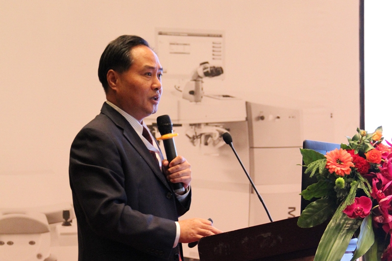大会主席、重庆医科大学附属第二医院杜之渝教授主持开幕式并致开幕词,国家卫生和计划生育委员会人才中心陆建成处长,海峡两岸医药卫生交流协会副会长方俊教授,中国医师协会眼科医师分会副会长葛坚教授,中华眼科杂志编辑部黄翊彬主任,中国医师协会安徽省分会梁朝朝会长,大会主席、海医会眼科分会白内障与屈光手术学组组长夏晓波教授,大会主席、全国眼屈光专家俱乐部主席王铮教授,瑞士Ziemer公司总裁Frank Ziemer,蔡司医疗屈光部经理李宁先生等分别发表了热情洋溢的致辞。