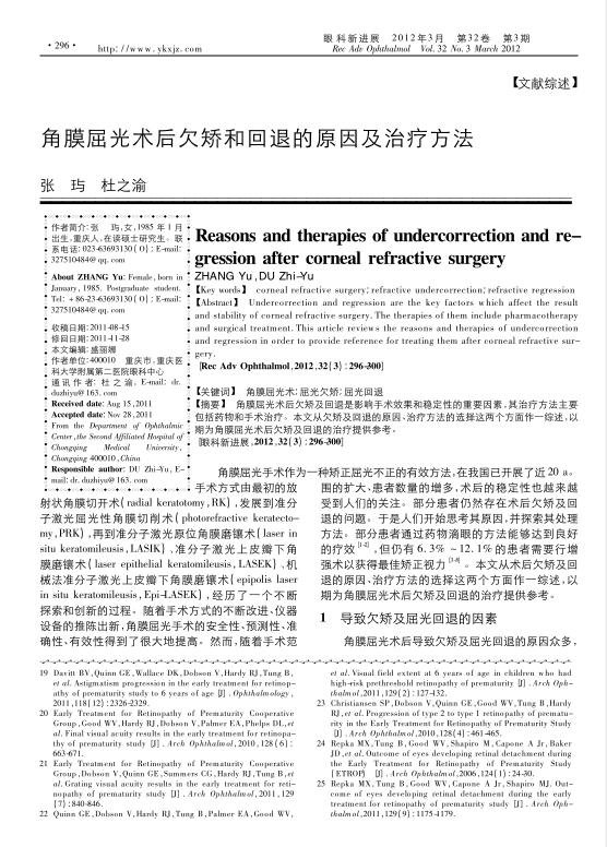 角膜屈光术后欠矫和回退的原因及治疗方法