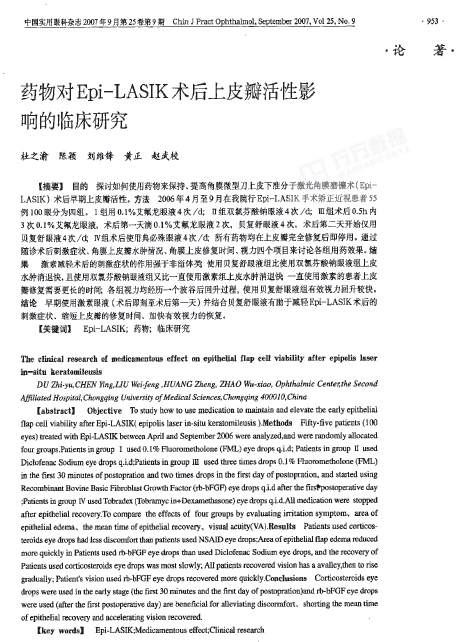 - 药物对Epi-LASIK术后上皮瓣活性影响的临床研究