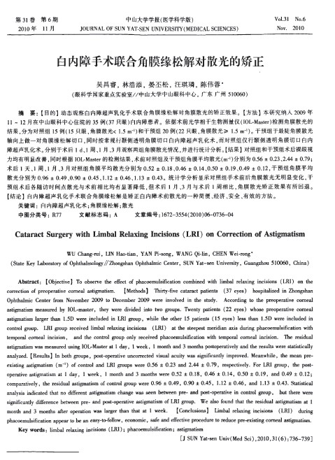 - 白内障手术联合角膜缘松解对散光的矫正